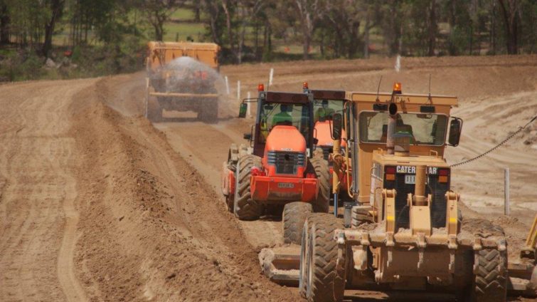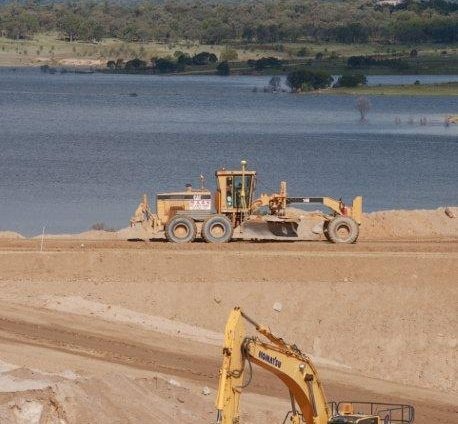 The Copeton Dam upgrade elements included works, bulk excavation of a fuse plug auxiliary spillway channel, set out for the drilling and blasting of approximately 1,200,000m3.